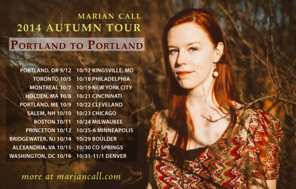 Marian Call traverses the north from Portland, OR to Portland, ME and back again, with more than 40 shows spanning the continent! More specifics at https://mariancall.com/shows/, and Facebook events to share at https://www.facebook.com/mariancallmusic?sk=events. Want to catch a future show near you? You really must be on the mailing list, dahling. Here are some of the first and last show details for the tour: